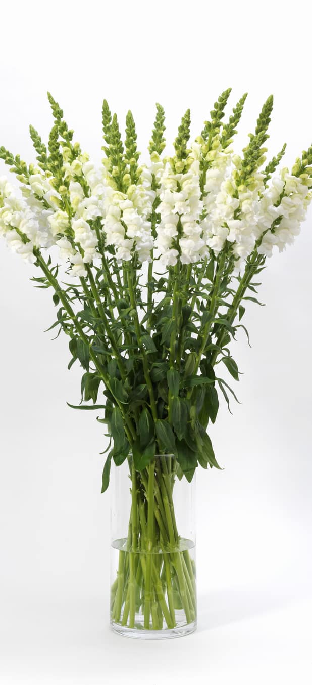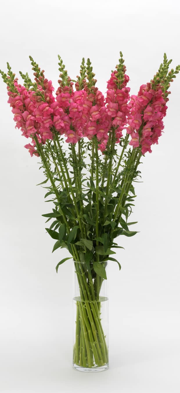 This classic cut flower has a distinctive “snapping” shape that resembles a dragon’s mouth. Beautifully strong, sturdy stems have long, tight spikes with excellent tapers. The closely set blooms are the perfect addition to bouquets and impressive floral arrangements. Snapdragons are known for their eye-catching blooms in a variety of lovely colors, from pastels to bold hues, including bicolors.