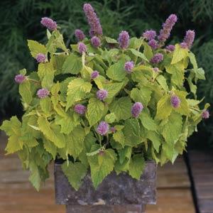 Bushy, upright and fast-growing plants feature lime green to golden leaves with fade-resistant lavender blue spikes. Low maintenance, drought and heat tolerant, attracts butterflies.
