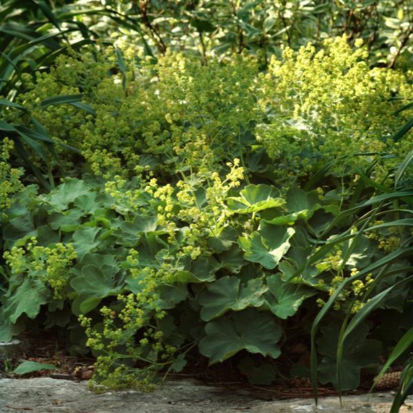 General Information: Striking, profuse greenish-yellow flowers above bright green, woolly textured leaves make Lady’s Mantle an outstanding garden performer in borders, as groundcover or grouped with plants such as Siberian iris, astilbe or hosta. Flower sprays dry well for arrangements. Heat and shade tolerant. Will self-sow.