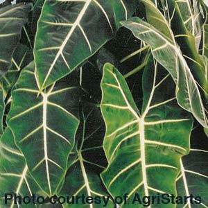Alocasia features large, heart-shaped leaves that take center stage in containers and in-ground planters. An added bonus is the small, calla-like flowers. Part of the Aroid family, Alocasia produces underground tubers or rhizomes that spread and produce more coverage in landscapes and garden beds.