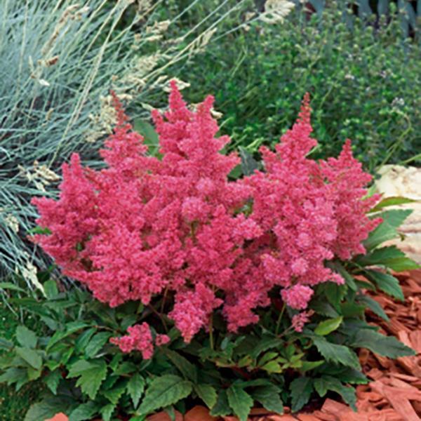 The first astilbe cultivars that do not require vernalization for flowering. Forms compact mounds of attractive, fern-like foliage with vibrant bloom clusters.