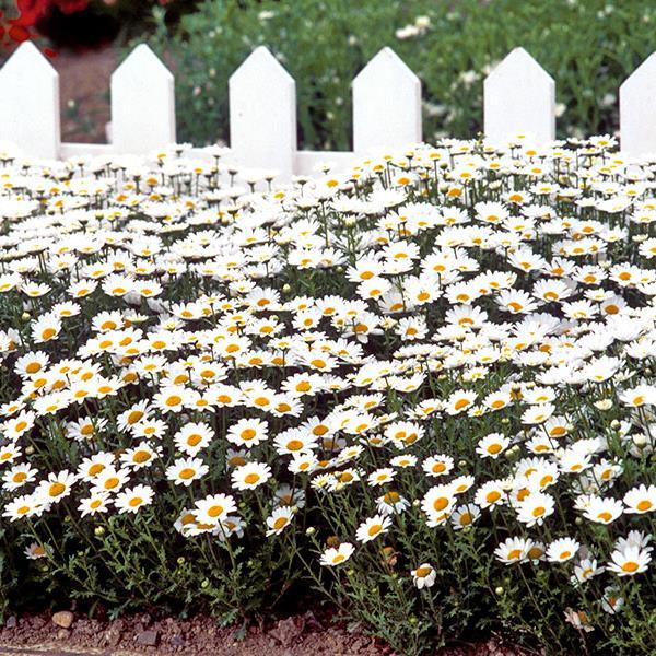 General Information: These low-maintenance, dwarf plants thrive in warm temperatures and long days to produce masses of 1.5-in. (4-cm) daisy-like white flowers with golden-yellow centers.