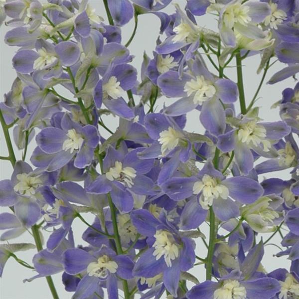 General Information: Unique pale hues for Delphinium; small, orchid-like flowers. Less robust flower spikes; perfect for mixed bouquets. Highly productive variety; continuous new shoots.