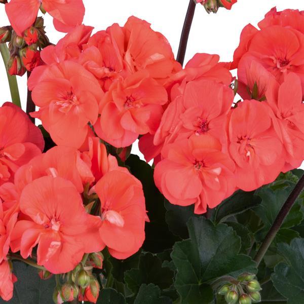 Excellent branching with mighty blooms on deep, dark green foliage. Compact upright plant with superior habit; very grower friendly. A great pick for a premium zonal program and for early season sales in smaller potted containers.