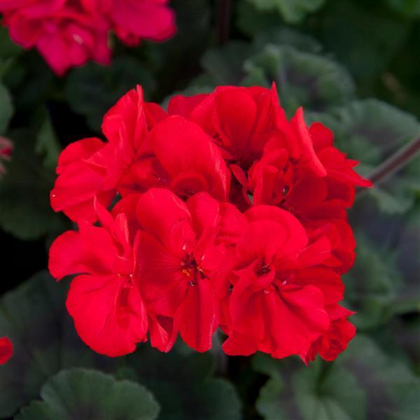 General Information: This stunning, large-flowered zonal geranium features vibrant blooms on a very strong, vigorous plant. Ultra-dark green leaves feature a black zone for even more garden interest.