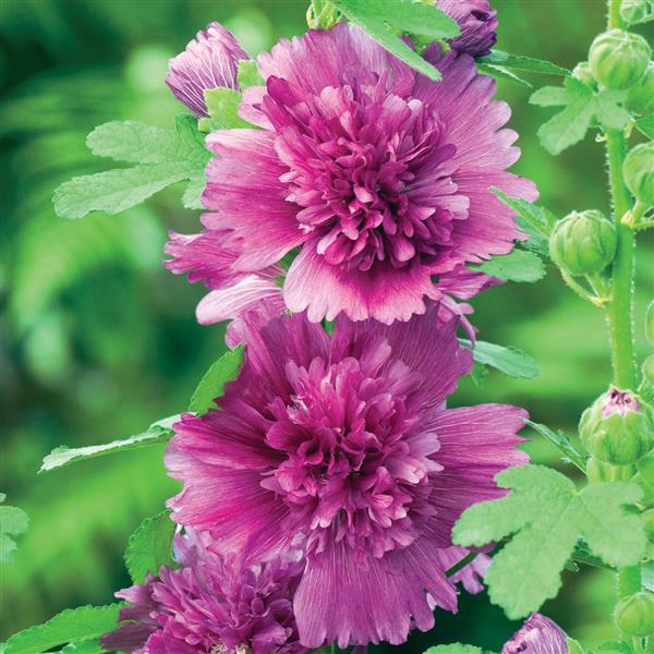 Long-flowering, naturally dwarf annual hollyhock produces large, semi-double blooms from May through October. Good for bedding and containers.