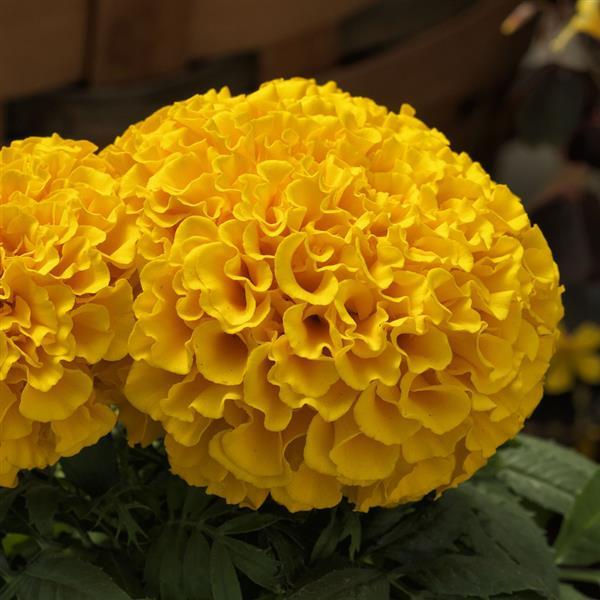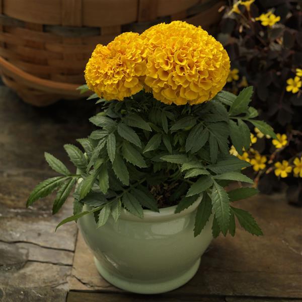 Dwarf, compact plants need little to no PGRs and deliver excellent landscape performance. Thick flower stems keep the bright and large, fully double flowers standing upright. Uniform bloom time and height across the gold, orange and yellow varieties.