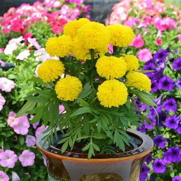 General Information: Semi-dwarf, heat-tolerant series with huge double flowers. Beautiful as a single variety or grouped in large pots, beds and landscapes.