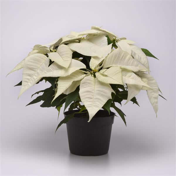 This variety joins the new category of very white white to true white poinsettias. Brilliant White features attractive pointed white bracts on a medium-low vigor frame. Easy to produce, plus strong shippability and post-harvest performance.