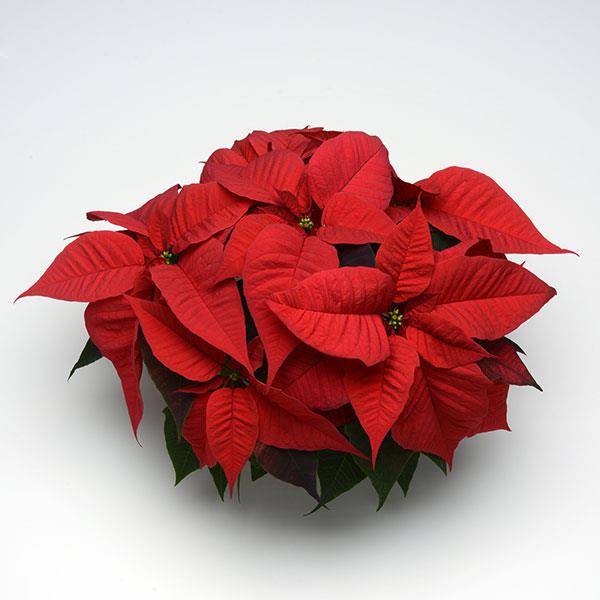 Very large-bracted Christmas Spirit offers a rich red color for enormous retail appeal. This variety is best suited for large pots thanks to its high vigor and early flowering. Plus, this versatile poinsettia won’t delay in the heat for Southern growers, and is a superior choice for cold-finish production.