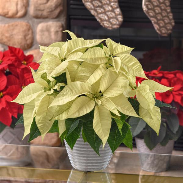 Christmas Joy White is the top-selling white poinsettia in the Selecta One lineup. Due to the uniformity across all colors, Christmas Joy also is our number-one series for mixed containers. Grow this one cool to save energy and money.