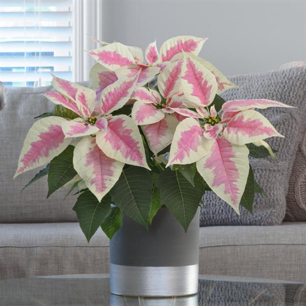 Early Elegance is an excellent choice for early-season poinsettia sales, targeting opportunities for mid-November through Thanksgiving. It works well in all North American markets. Medium-low vigor is ideal for 4-in. up to 8-in. (10 to 20 cm) containers. The series includes a stunning, vibrant marble and one of the truest pink colors available.