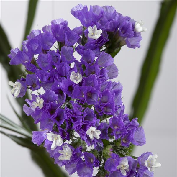 General Information: Cross between Limonium sinuatum and Limonium perezii. Sharp, solid colors and big panicles on high-quality, strong stems. Hardy, productive plant. Stems grow completely flat; easy to pack and gives great volume when crisscrossed. Suitable for bouquets; fantastic filler and accent. Can also be dried; color stays intact.